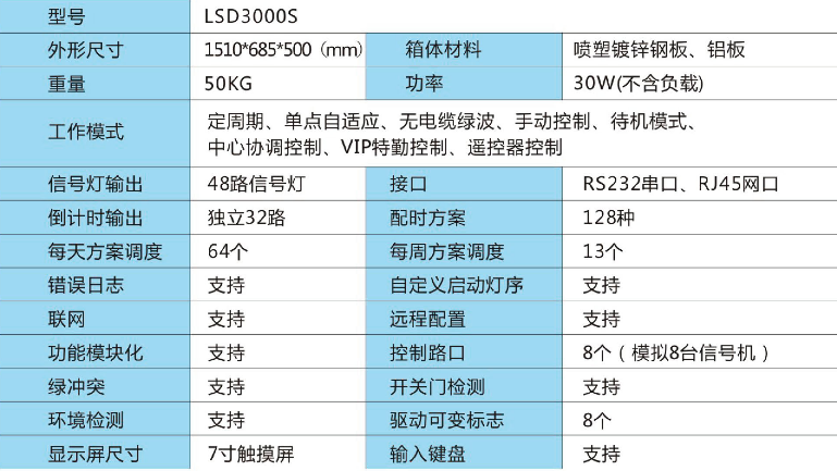 LSD3000S型交通信号控制机采用,稳定、可靠的??榛啻砥鳌⒍嘧芟呦低辰峁?。采用高速ARM控制器及大规模集成电路,实时运算道路交通信息,如道路交通状态、道路车流量。全部信号机可以组成城城网,完成于指挥中心信息交换。根据城市交通模型进行云计算,计算数据。带有一块7寸液晶触摸显示屏,和一个数字键盘。